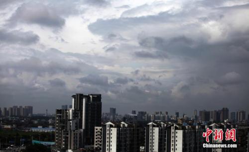 资料图:8月3日,受台风“云雀”影响,扬州上空乌云密布。孟德龙 摄