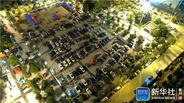 △8月14日,车辆聚集在通海县一处应急避难场所(无人机拍摄)