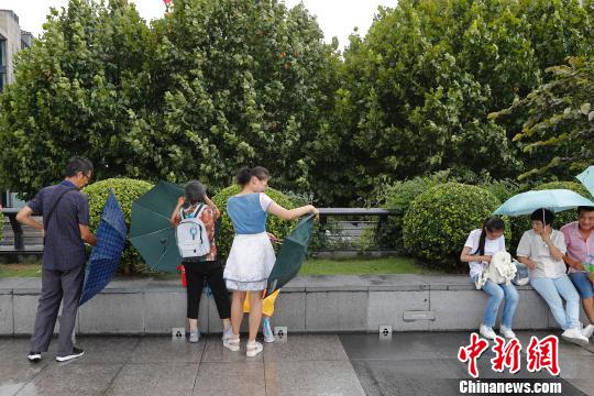 受台风“温比亚”的外围环流影响,上海部分地区出现分散性阵雨、时晴时雨现象。游客来不及打伞躲雨。 殷立勤 摄