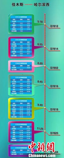 开通初期,将安排开行哈尔滨西至佳木斯动车组列车13对,哈尔滨至佳木斯间最快客车旅行时间将由原来的5小时44分缩短至2小时3分,同时?结束沿线大多数地区不通火车的历史?。