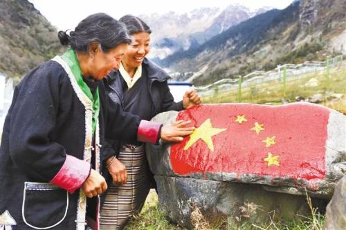 几十年前,父亲桑杰曲巴从山外买来红布和黄布,缝制出了四面五星红旗,高高升起在他们家屋顶,卓嘎和央宗两姐妹懂得了“这是中国最宝贵的东西”。
