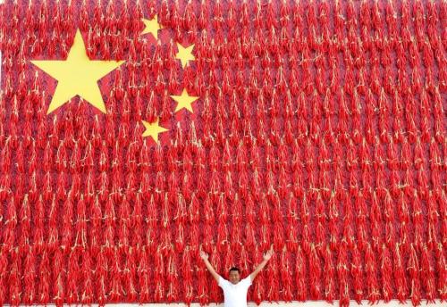 秋收时节,在河南省孟津县一处村庄,是中国农民的勤劳,让五星红旗出现在丰收的画卷里。