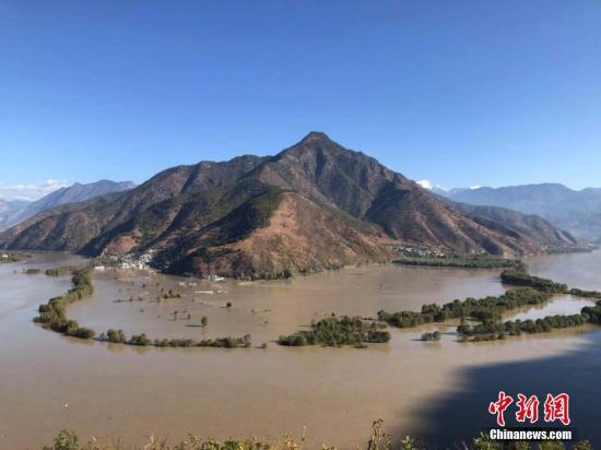 11月15日,金沙江白格堰塞湖洪峰过境丽江,长江第一湾成一片汪洋。 何宗奎 摄