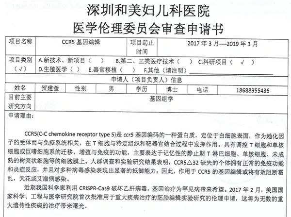 针对贺建奎与深圳和美的关系,程珍表示“没有关系”,但对于网上传出的盖有深圳和美医院印章的医学伦理委员会审查申请书,程珍表示“仍在调查中”。