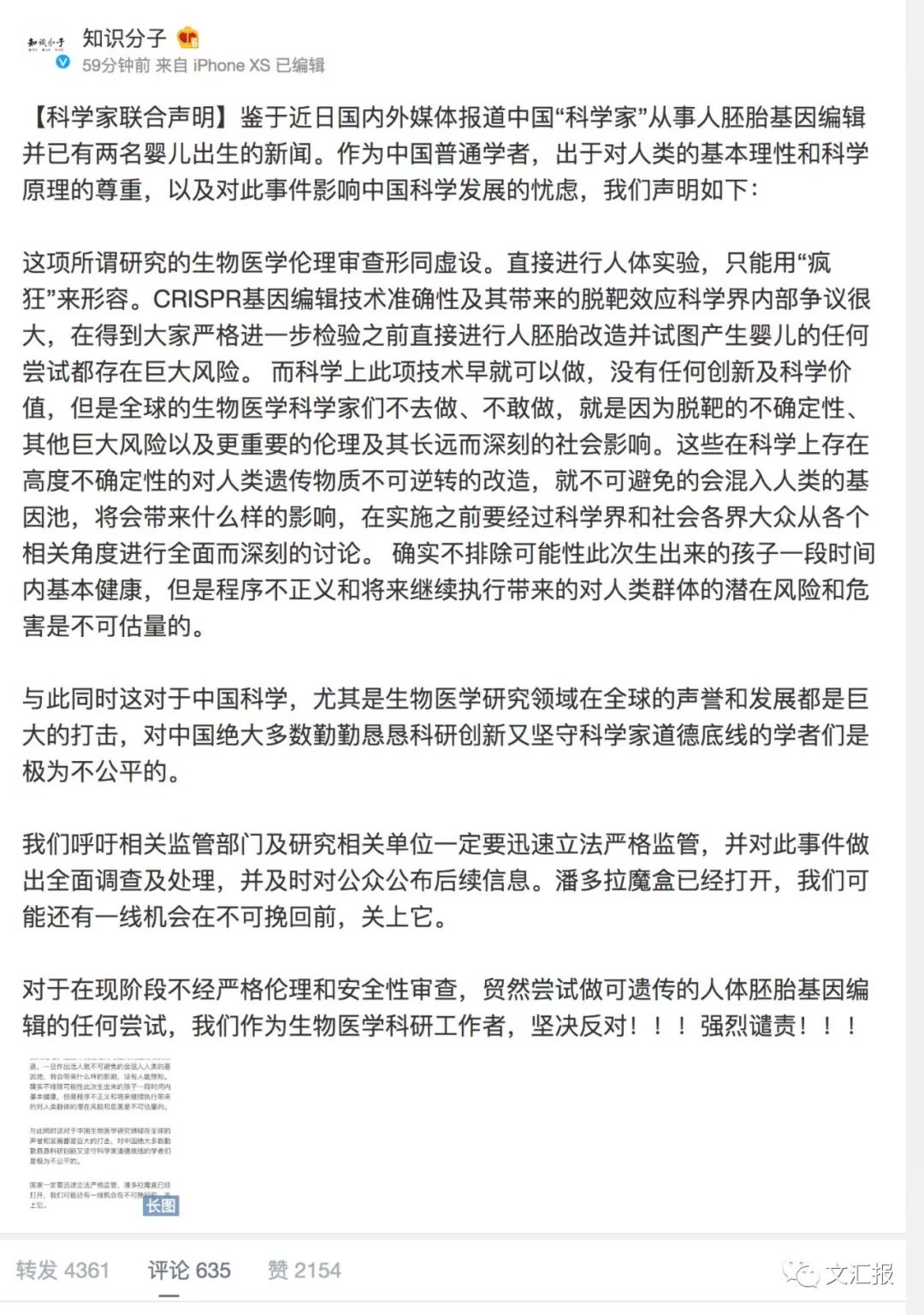 刚刚,超百位科学家发出联合声明,认为此研究存在的潜在风险和危害是不可估量的,表示坚决反对和强烈谴责: