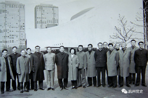 1973年4月,联合国大楼前,中国出席联合国海洋法会议代表团全体成员(右七为厉声教,左二为吴建民)。