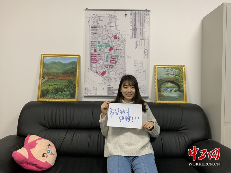 许雪婷同学是一名研究生,利用学习之余,她还在学校做一些行政工作,同时也是一名兼职的辅导员。2019年许雪婷同学的心愿是:希望抽中“锦鲤”。“锦鲤”最近可谓是最火热的一个词,现在,“锦鲤”已经不仅是一种鱼,更是一种好运的象征,我们也祝愿雪婷同学,成为下一个“信小呆”。中工网记者 郭丽娟摄