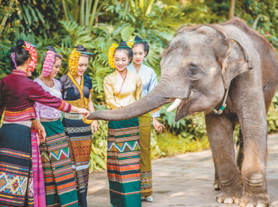 云南西双版纳,大象相伴。