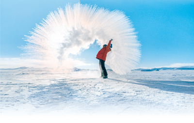 寒冷冬季,泼水成冰。