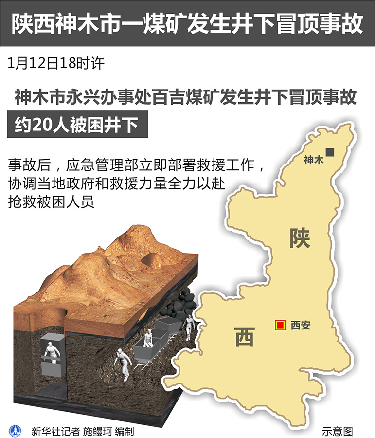 新华社西安1月13日电(记者李亚楠)记者从陕西省神木市政府获悉,12日下午,神木市百吉矿业李家沟煤矿井下发生事故,经核查,当班入井矿工共87人,事故发生后66人安全升井,21人被困。截至目前,被困的21人中已确认19人死亡,其余2人正在全力搜救中。