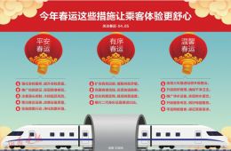 另外,春运期间,太原、临汾、运城、忻州、阳高等53个车站候车室、售票厅进行了站房设施全面整治,84个车站厕所进行星级考核,太原南、太原、忻州等18个车站候车室旅客饮用水源进行净化改造,经过专业化培训的1031名“山西旅游宣传员”也将全部挂牌上岗,助力山西推进全域旅游。通过全方位提升客运服务品质,太原局集团公司将努力让旅客获得无处不在的温馨服务。