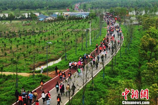 官亭林海举办毅行活动,大批游客前来参观。 钟欣 摄