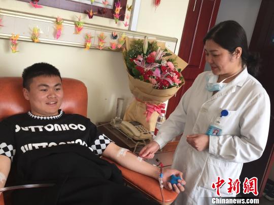 图为3月1日,樊希在接受造血干细胞采集。 西藏自治区红十字会 摄