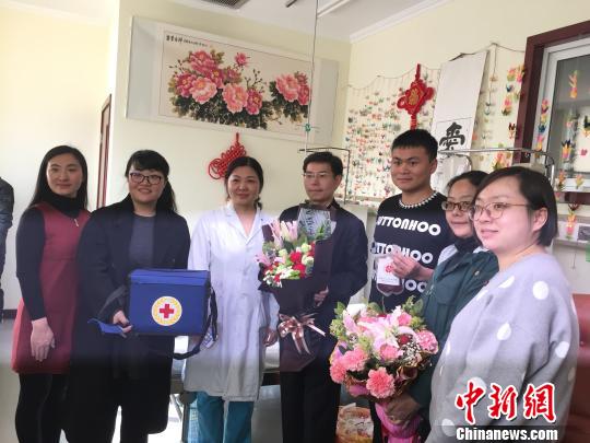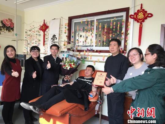 图为3月1日,西藏红十字会工作人员、医护人员集体与完成捐献后的樊希合影。 西藏自治区红十字会 摄