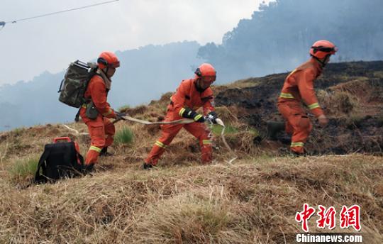 据了解,米易县攀莲镇火场植被以杂灌、杂草为主,在5至6级西南风作用下,火势向东南方向蔓延,形成了高强度地表火及树冠火立体燃烧之势,火场烟雾弥漫,扑救难度较大。米易驻防分队20名人员从火场北线东北方向接近火场,采取强攻推进战术阻击火头,地方扑火队20人负责火场南线东南侧明火扑救任务。