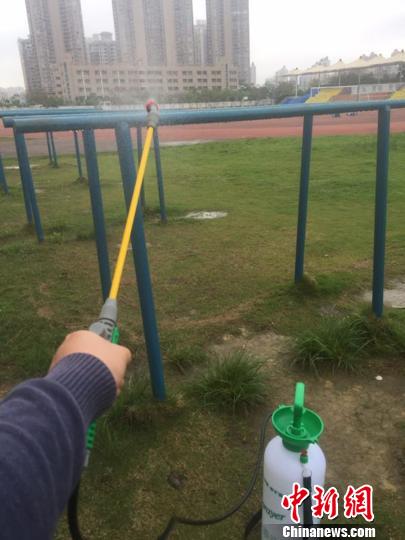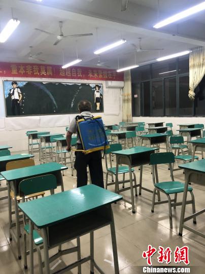 图为惠州市防疫部门在为惠州市华罗庚中学学校消毒、消杀 惠州市华罗庚中学办公室提供 摄