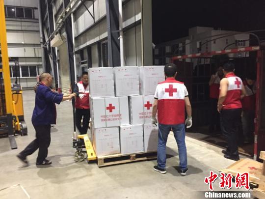工作人员正在紧急调拨救援物资。(图片由四川省红十字会提供)