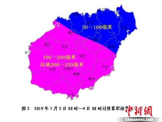 2019年7月2日8时—4日8时海南岛过程累积雨量预报图。 海南省气象台供图 摄