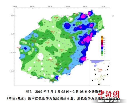 2019年7月1日8时—2日6时海南全岛雨量。 海南省气象台供图 摄