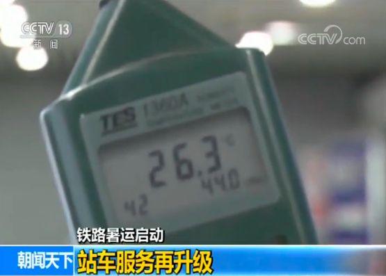 央视记者 郑连凯:我们现在看到的这个空调通风设施,安装在北京南站地下的出租车候车区,暑运第一天,北京地区的室外温度达到了36度,但是我们在这里的实测温度比室外低了10度左右。