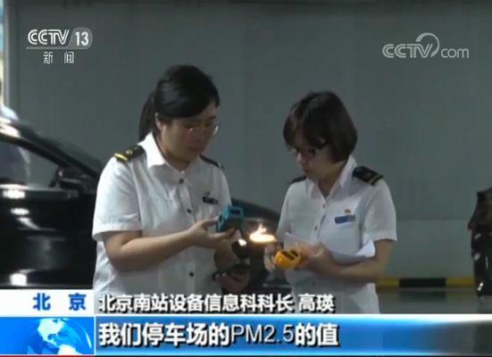 不光是候车区的温度降下来了,记者在地下停车场采访发现,这里不时有工作人员在测试空气质量。暑运前,北京南站10万平米地下停车场通风系统全面更换,实现了排风系统全覆盖,进一步提升了空气质量。