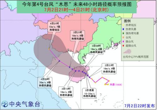 今年第4号台风“木恩”未来48小时路径概率预报图。图片来源:中央气象台网站