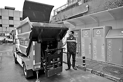 朝阳区白领家园小区的垃圾由不同的垃圾运输车分类运输摄影/本报记者 黑建军