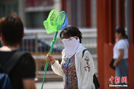 8月1日,北京高温天气持续,出行的市民用各种装备来遮挡炙热的阳光。中新社记者 张兴龙 摄