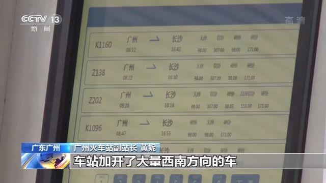 广州火车站副站长 黄妮:为了应对(客流高峰)这一块,车站加开了大量西南方向的车,在进站口加开了50个检票通道,正门口加开了30个验票闸机,东西两面各加了15台和12台检票机,(今年)8月份车站就开展了站改工程,在去年的基础上扩大了候车面积,候车环境会更加适合。