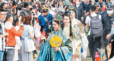 于是,琅子今年转型尝试汉服设计,并创立了汉服品牌“栗”。“我们坚持‘老衣新穿’的理念,在保留汉服古韵的同时,努力将传统元素和现代元素相结合。”琅子告诉本报记者,“我们希望汉服能够搭配一些现代化着装,比如T恤、牛仔裤等,让汉服越来越日常化,成为一种时尚潮流。”