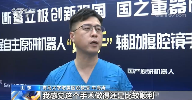 青岛大学附属医院教授 牛海涛:我感觉这个手术做得还是比较顺利,总体来说动作非常流畅,操作起来还是非常灵便。