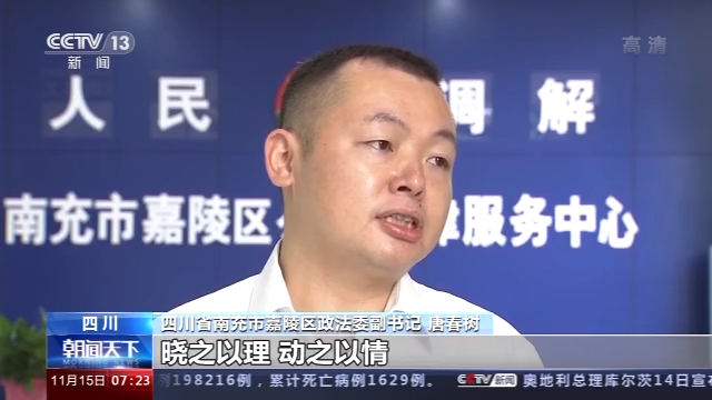 四川省南充市嘉陵区政法委副书记 唐春树:我们的区级部门,还有我们的行业调解组织,还有我们的律师调解团队,通过我们律师讲法律,调解组织讲政策,晓之以理,动之以情,解决群众反映的具体的矛盾纠纷。