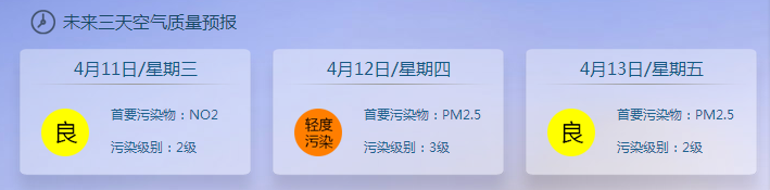 未来三天空气质量预报。来源:网络截图