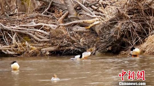 中新网长春4月12日电 (郭佳)记者12日从吉林延边林业部门获悉,近日,在长白山地区发现10余只迁徙北归的中华秋沙鸭。据介绍,这些珍稀鸟类将在此栖息繁殖。