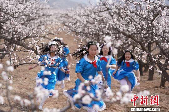 中新网北京4月12日电 (记者 曾鼐)日日春光斗日光,山城斜路杏花香。4月北京延庆进入杏花最佳观赏期,呈现百花绽放的壮美景观。12日,以花会友为主题的系列活动在这里举行,也拉开了2019北京世园会倒计时一周年的帷幕。