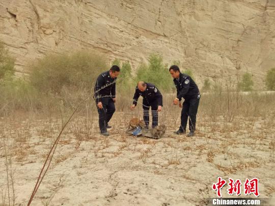 民警在对村民救出的小狐狸进行放生。 王新 摄