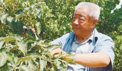 河北龙山上,张兴在打理核桃树。国海涛 摄
