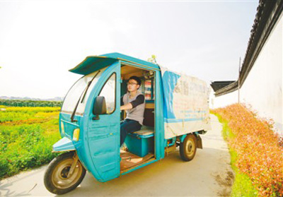 他叫查建兴,是江苏省苏州市吴中区东山镇碧螺村人。高中毕业后,他到城里打工,一干就是7年。2015年,他辞掉城里仓库管理员的工作,回到家乡,成为一名快递员。每天早上8点,查建兴都会骑着电动三轮车出门,穿梭在乡间林荫道上,给各个村的老百姓送去包裹。