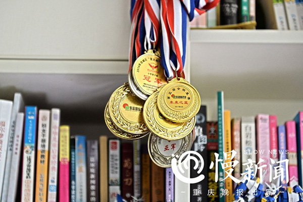 书桌上,挂着十几块金、银牌,是他搏回来的荣誉。除篮球外,他痴迷足球、乒乓球、跆拳道。小学3年级,校运会800米赛道上,郎铮打破了校纪录。