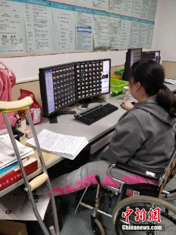 山西省肿瘤医院核磁CT室,她意外骨折,本在家休养,得知医院为了缓解核磁CT检查的压力、缩短患者住院周期,科室全员加班,自己也主动加入。 赵致楷 摄