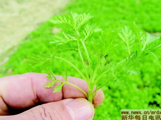 这是播后45天的青蒿苗。青蒿素复方可以用于快速灭源除疟。 新华社发