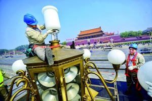 北京晨报讯(记者 王萍)昨天,一辆巨大无比的“变形金刚”矗立在天安门华灯下,这就是北京市城市照明管理中心的华灯检修车。从昨天起,长安街沿线及天安门广场共253基华灯开始进行全面清洗和检修(见图),预计9月底将以焕然一新的面貌亮相。