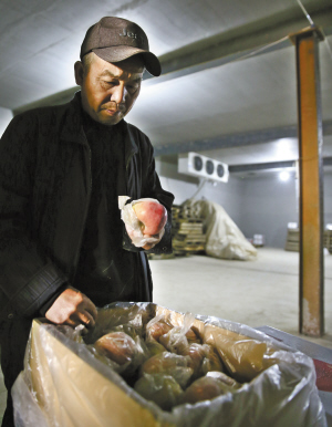昨日10时许,记者驱车来到位于鹿泉区的西杨庄村杨贵林老人家,杨贵林正在和老伴整理空置的苹果箱。杨贵林今年70岁了,他家的苹果园去年大丰收,到现在冷库里仍有5万余斤苹果滞销。杨贵林的老伴介绍:“老杨身体不好,前段时间因为脑梗生病,还没好利索呢,因为惦记着家里的苹果,非得出院回家。”