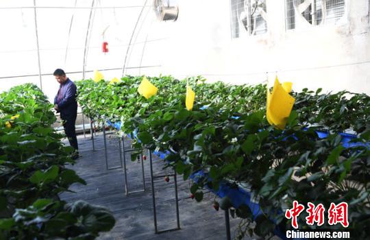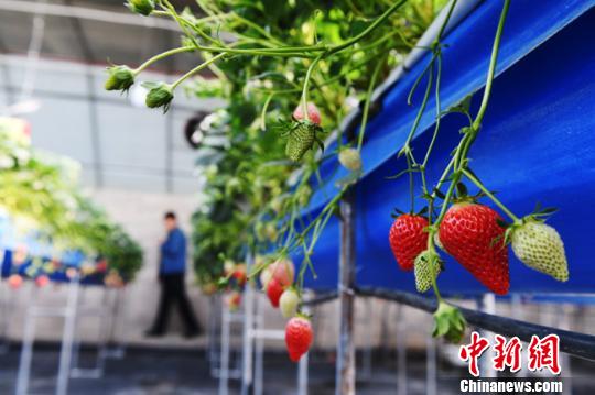 利用水肥化系统种植的草莓。 杨艳敏 摄