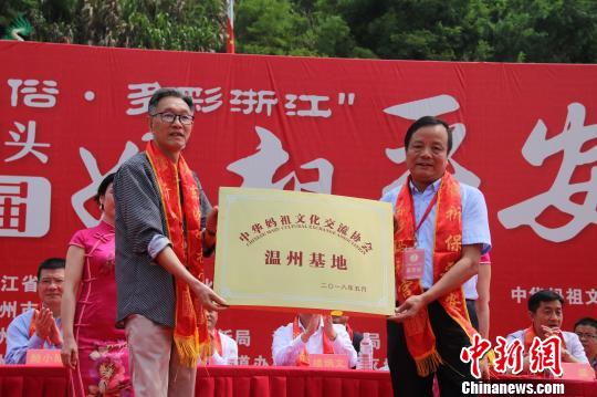 当日,中华妈祖文化交流协会授予洞头中华妈祖文化协会温州基地称号。此外,台湾、福建、苍南、洞头等代表还开展“四海安澜瓶”汇水仪式,把家乡的水共同汇入瓶内,寓意中华民族同祖同宗、同根同源。