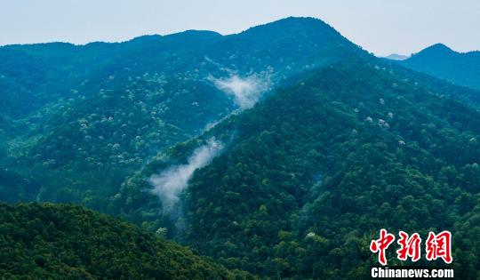 航拍江西钟山峡,雨后山色空蒙繁花点点。 赵春亮 摄