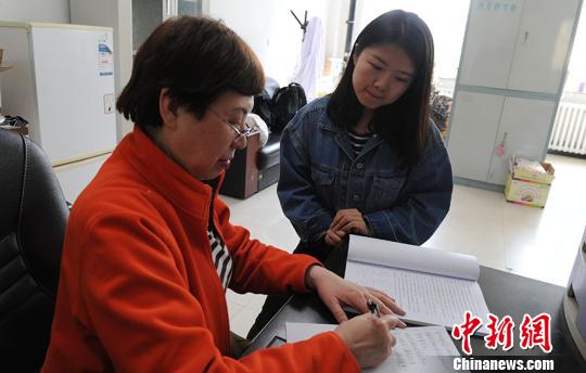 江梦南无法通过唇语读懂专业术语。三年研究生期间,她的导师杨晓虹(左)在涉及专业术语时,都会写下来给她看。 刘栋 摄