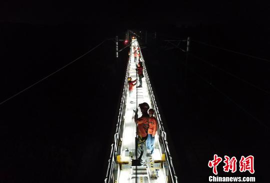 接触网工正在联劳协作,进行检修作业。 丁波 摄