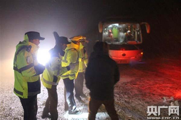 突发:旅游大巴雪夜被困大冬树垭口