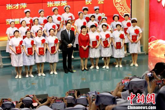 图为青海省人民医院为护龄30年及护理奉献奖获得者颁奖。 张添福 摄